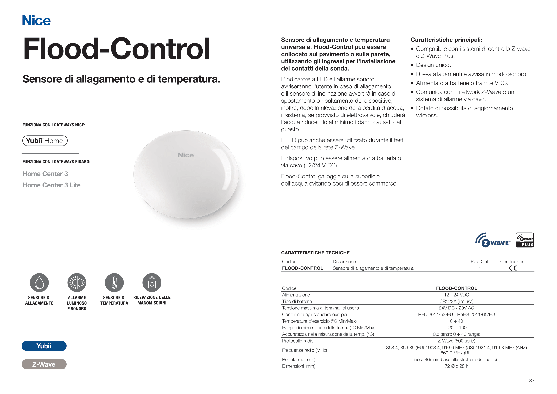 Nice - Sensore di allagamento e di temperatura