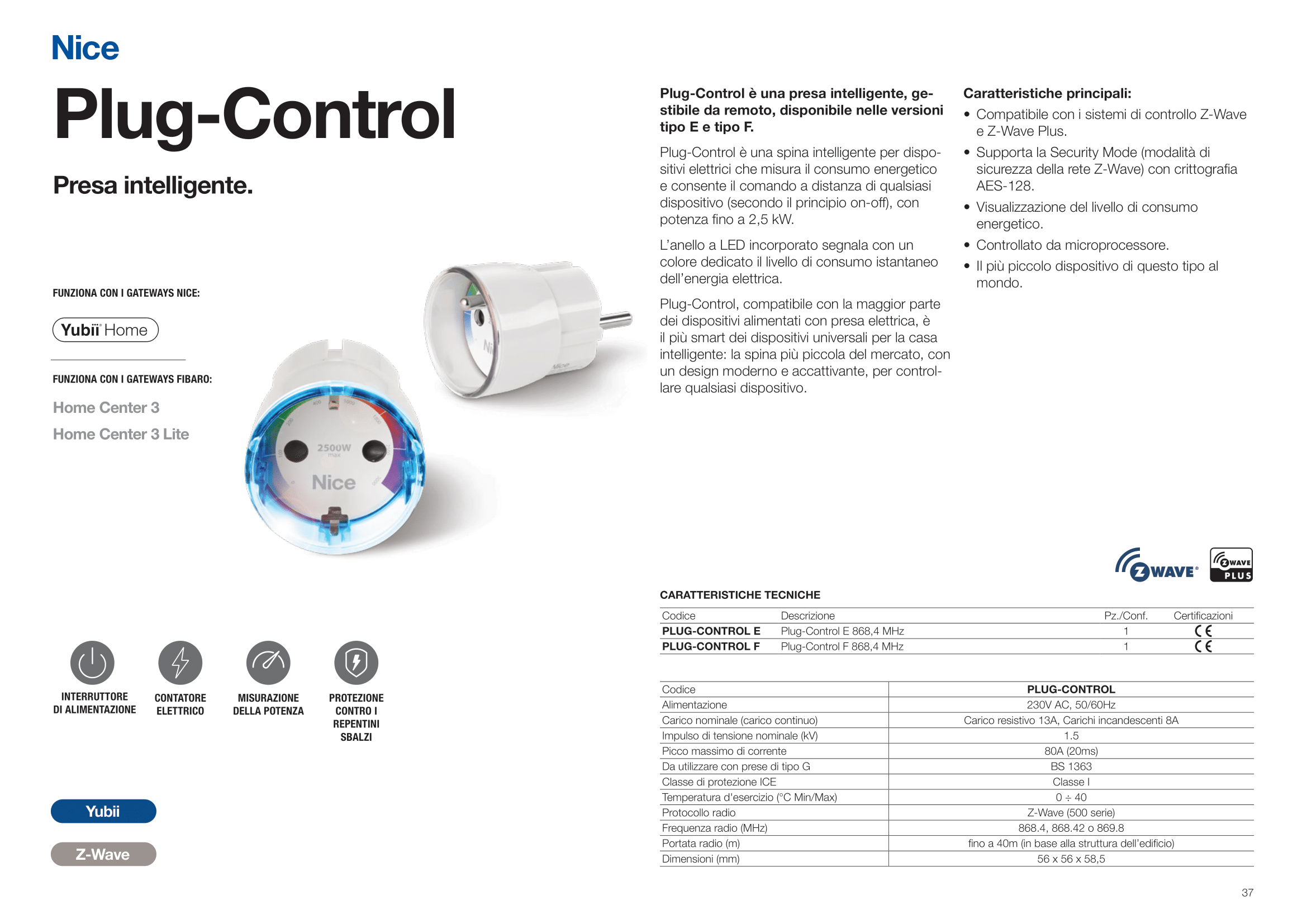 Plug-Control è una presa intelligente, gestibile da remoto, disponibile nelle versioni tipo E e tipo F.
