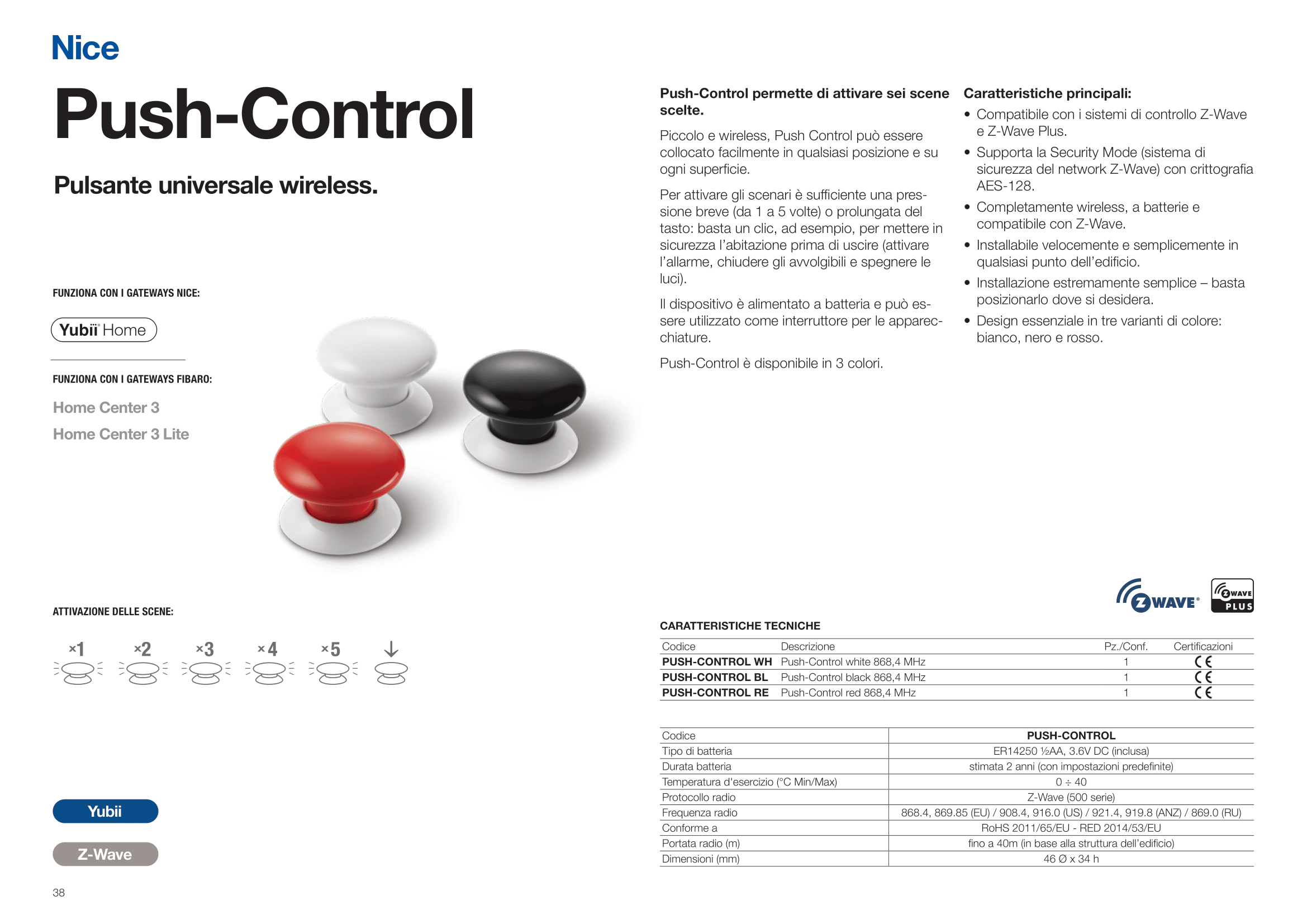 Push-Control è disponibile in 3 colori: nero, rosso e bianco